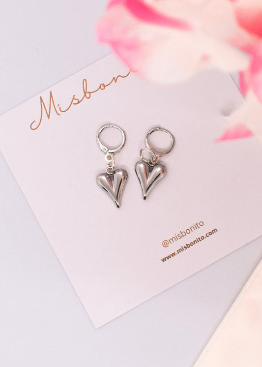 SILVER HEART HOOP EARRINGS