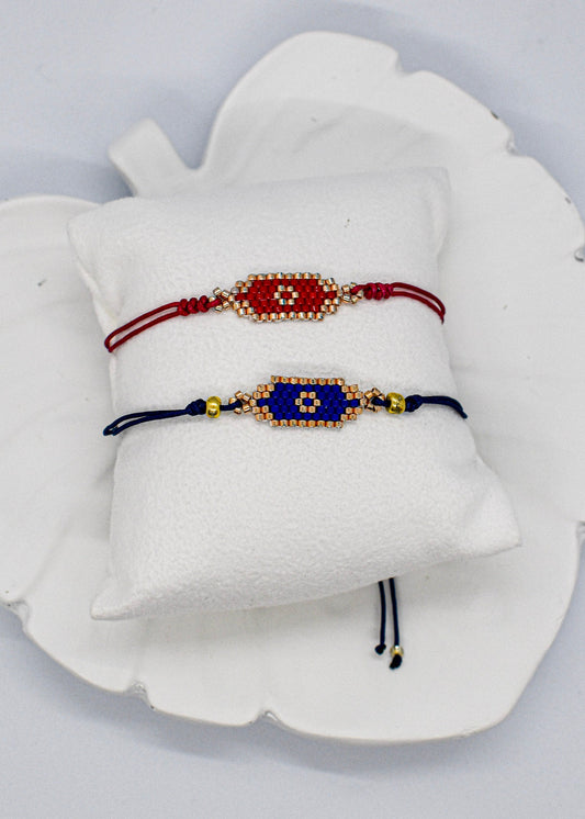 SMALL BAR BEADED EVIL EYE BRACELET