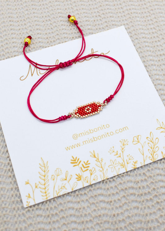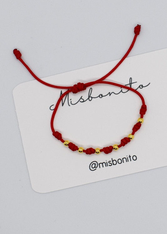 SEVEN KNOTS STRING with GOLDEN BEADS BRACELET (RED)