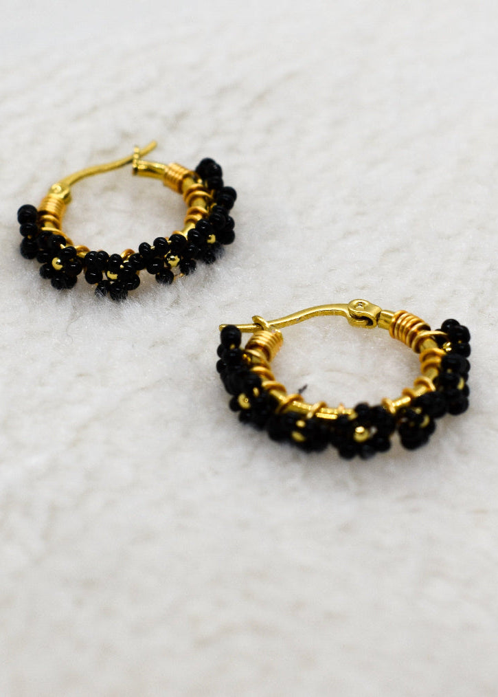 These stunning Floral Boho Hoops are the perfect addition to any bohemian jewelry collection. These handcrafted earrings feature delicate 11/0 seed beads and golden beads intricately woven onto stainless steel hoops, creating a unique and eye-catching design. The vibrant floral pattern adds a touch of femininity to these statement hoops, making them perfect for casual or dressy occasions. Lightweight and comfortable to wear, these hoops are a must-have for you. Embrace your inner bohemian chic with these beautiful handmade Floral Boho Hoops.